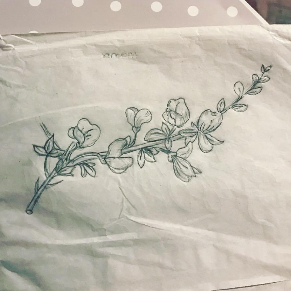 One of the first things I considered worth the pain of holding a pencil after my strokes was the opportunity to design tattoos for me and my then-fiancé to celebrate our engagement! Our friend Rina did the actual tattooing, but the linework–depicting sprigs of indigo and broom, respectively–is mine!